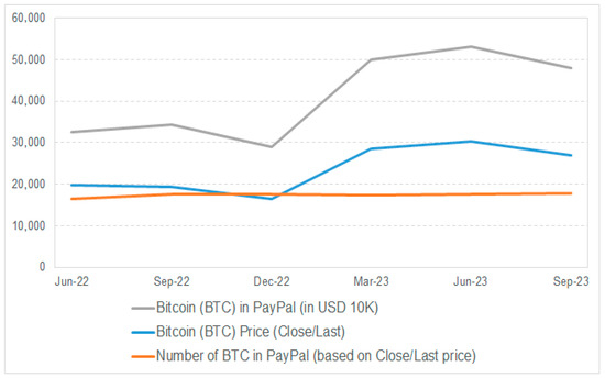 PayPal custody of bitcoin (BTC) (Source: PayPal annual/quarterly reports to the U.S. Securities and Exchange Commission [61]).