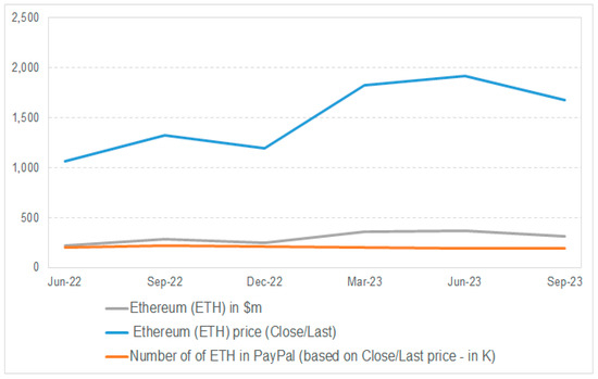 PayPal custody of Ethereum (ETH) (Source: PayPal annual/quarterly reports to the U.S. Securities and Exchange Commission [61]).