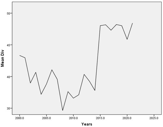 Income diversification ratio in Europe during 2000–2021 (source: World Bank’s Global Financial Development Database (GFDD).