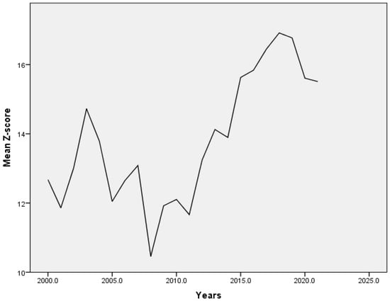 Bank Z-score in Europe during 2000–2021 (source: World Bank’s Global Financial Development Database (GFDD)).