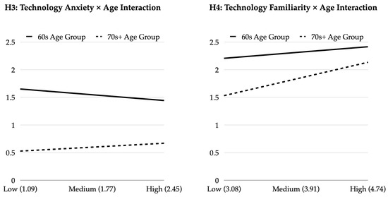 Age moderates the relationship between technology familiarity and mobile banking continuance intention, such that the positive effect of technology familiarity is more substantial among older adults aged 70 and above compared to younger older adults (aged 60–69).