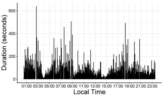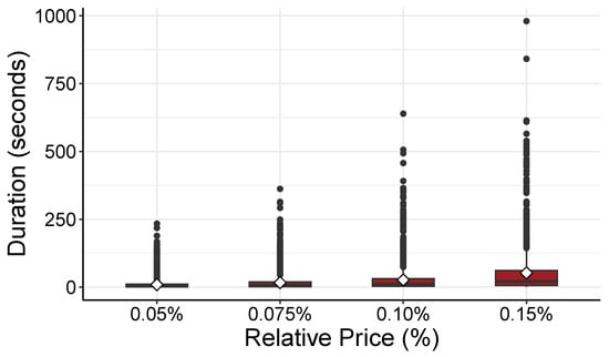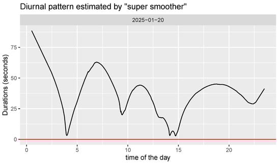 For the intraday analysis of Bitcoin prices, we computed price durations from high-frequency financial data obtained from the Dukascopy website (available at: https://www.dukascopy.com/trading-tools/widgets/quotes/historical_data_feed), corresponding to 20 January 2025. The removal of seasonality and the model fits within the ACD framework were made using the R package ACDm, Version 1.0.4.3 [45].