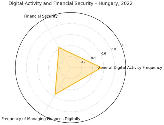 Each variable was normalized to a 0–1 scale to ensure comparability and proportional visualization. The figure provides a concise overview of how the intensity of digital activity and digital financial management relate to the perceived level of financial security among Hungarian respondents.