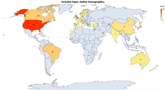 Country of author’s affiliation(s) of included papers.