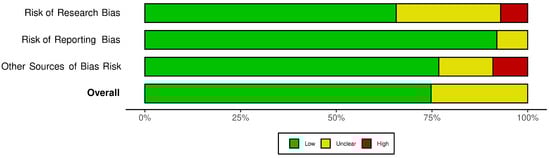 - McGuinness, L.A.; Higgins, J.P.T. Risk-of-bias Visualization (Robvis): An R package and Shiny web app for visualizing risk-of-bias assessments. Res. Synth. Methods 2021, 12, 55–61. [Google Scholar] [CrossRef]