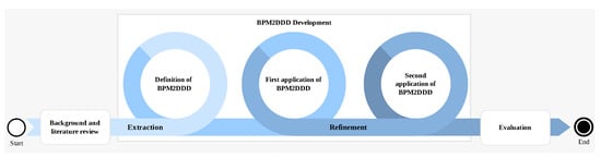 Graphical representation of the methodology employed in the development of BPM2DDD.