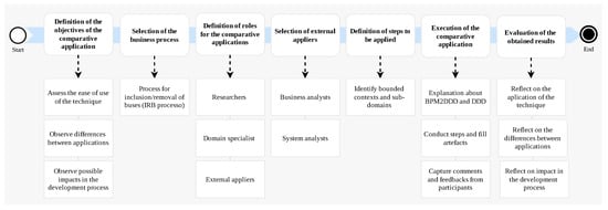 We employed two independent participants to apply our approach and tried to assess if BPM2DDD can be implemented by different people who are not directly involved with the work. The comparative application has provided us the following insights: (a) the need of domain knowledge about the organisation; (b) the need of basic knowledge about BPMN; and (c) the need of knowledge about DDD; The main lesson learned is that, before future deployment of our approach, we should make sure to enable the appliers in these aspects.