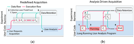 With this change, it becomes apparent to perform complex acquisitions under one of two different paradigms for data acquisition. Under the traditional paradigm, users can select a predefined acquisition program and issue collection over a predefined collection of experimental configurations (