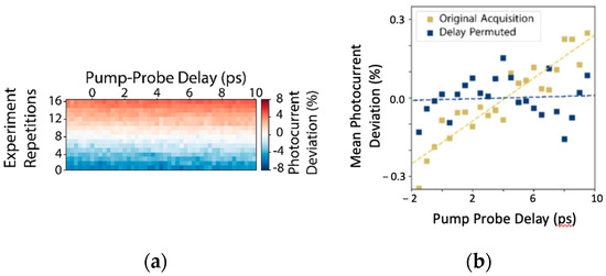 Figure 4a. Despite the appearance that this minimizes the effects of transients, when we average data across repetitions, we see that there is still a pernicious dependence of mean dose, measured by total photoelectron yield, as a function of the experimental delay, as in