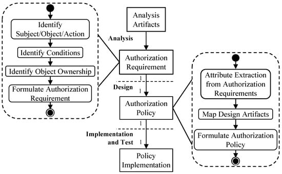 17]. To counteract this, authorization should be collected during the requirements analysis and further realized throughout the design and implementation. However, there is no widely established procedure to define authorization policies. While there are model-driven approaches to derive ABAC policies based on Unified Modeling Language (UML) models [
