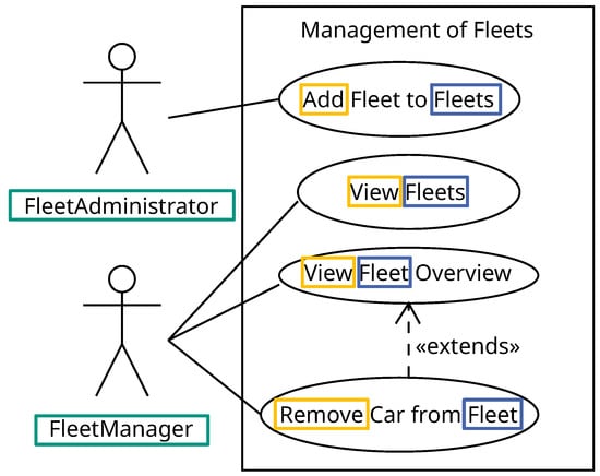 For the requirements analysis, we apply use cases as primary analysis artifacts to formulate user requirements. Alternatively, other types of requirement analysis artifacts can be utilized, provided they contain the necessary information for authorization. The functionalities of the microservice FleetManagement are shown in the use case diagram presented in