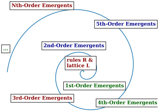 | Self-Organization (SO) and Emergence (Em) are found in the region between the regular/periodic behavior and chaos (i.e., at-the-edge of chaos) of many DS. | The SO regime is explained in synergetics from the physical point of view in [10,11]; SO-criticality is a subset of SO [13,14,15]. Emergence was initially coded manually [16,17,18]. |