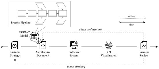 To analyze the architecture principles and their impact on sustainability in a structured and reproducible way, a process pipeline was implemented and is presented in this section. In a first step, we described the process at an abstract level. The abstraction reduced the pipeline to the underlying concepts, without specifying concrete models. This allows adoption beyond the Schiphol Group, as all models can be replaced by other or similar ones—as long as the purpose is preserved. In the second step, we populated the actions and inputs with concrete models that were used in our case study. In this step, we put the pipeline into a tangible environment and implemented it in professional practice. In the final step, we conceptually tied the process pipeline into a general business context and illustrated how the pipeline and its output could be integrated into the decision-making process.
