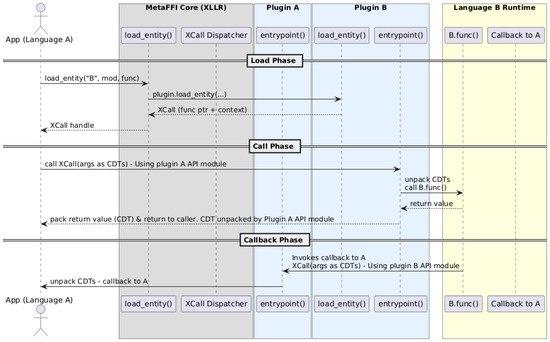 MetaFFI provides the functionalities mentioned in the Introduction (i.e., load_runtime and load_entity), in the Cross-Language Link Runtime (XLLR) (Section 6.2) through C-API. Each supported language also provides a MetaFFI API that wraps the XLLR-API and abstracts the usage of C-FFI from the end-user, making the usage simpler by not requiring any C-FFI knowledge from the MetaFFI user.