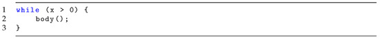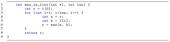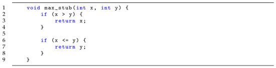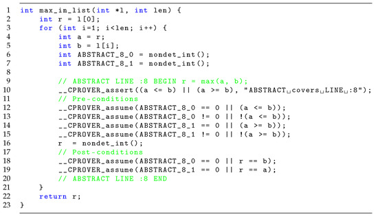 - Clarke, E.; Kroening, D.; Lerda, F. A Tool for Checking ANSI-C Programs. In Proceedings of the Tools and Algorithms for the Construction and Analysis of Systems (TACAS 2004), Barcelona, Spain, 29 March–2 April 2004; Lecture Notes in Computer Science. Jensen, K., Podelski, A., Eds.; Springer: Berlin/Heidelberg, Germany, 2004; Volume 2988, pp. 168–176. [Google Scholar]