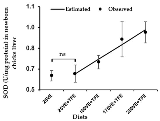 SOD activity increased linearly with increasing levels of VE (Figure 3), but TFE did not exert significant effects.