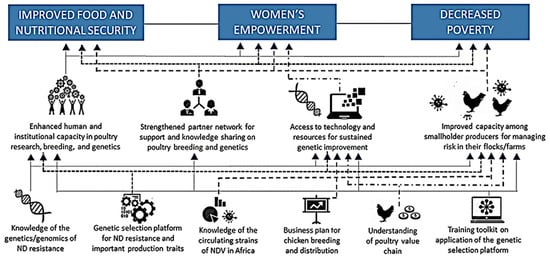 - Zhou, H.; Baltenweck, I.; Dekkers, J.; Gallardo, R.; Kayang, B.B.; Kelly, T.; Msoffe, P.L.; Muhairwa, A.; Mushi, J.; Naazie, A.; et al. Feed the Future Innovation Lab for Genomics to Improve Poultry: A Holistic Approach to Improve Indigenous Chicken Production Focusing on Resilience to Newcastle Disease. Worlds Poult. Sci. J. 2024, 80, 273–297. [Google Scholar] [CrossRef]