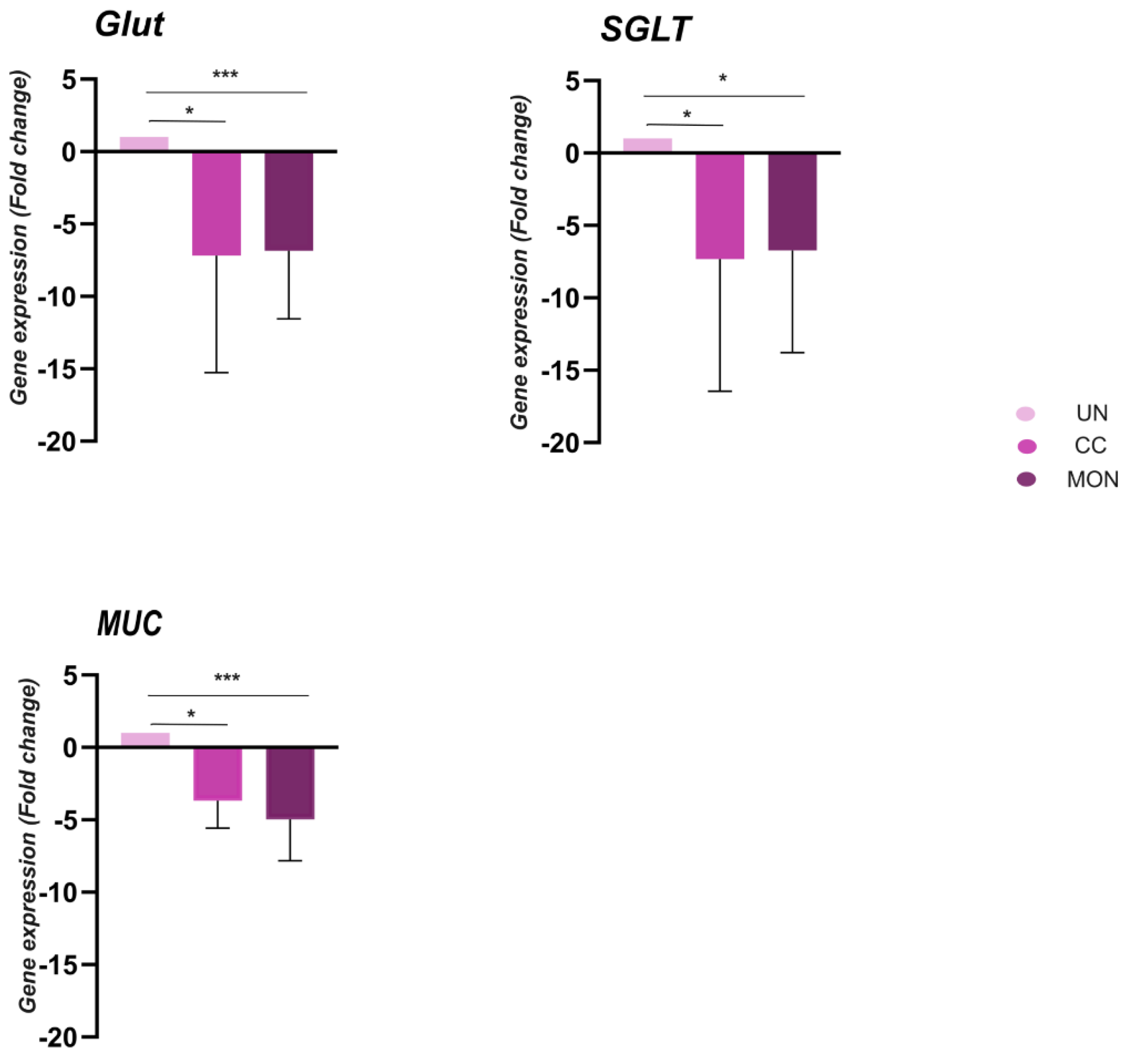 3.6. Gene Expression in Duodenum