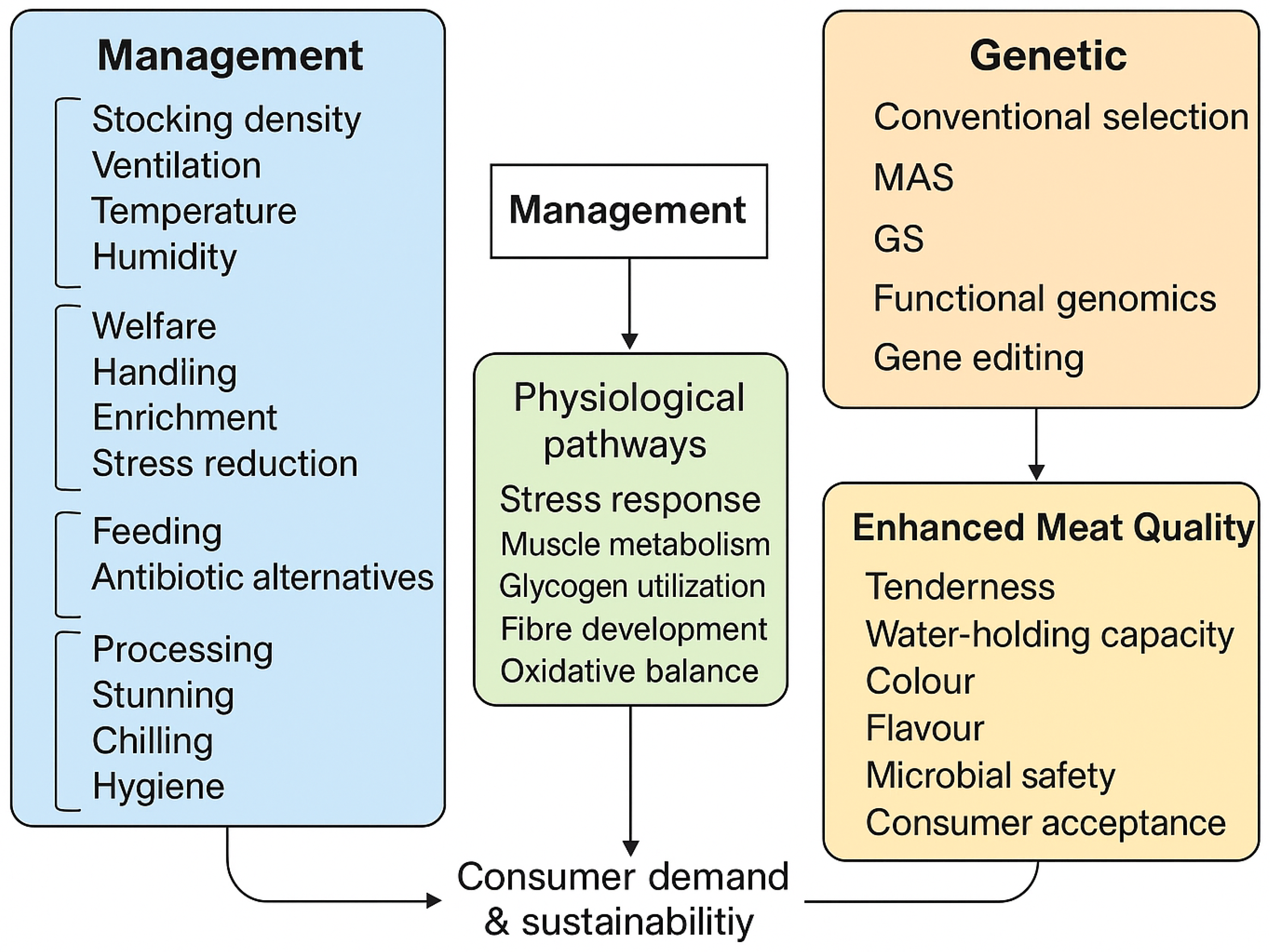 Management and Genetics Approaches for Enhancing Meat Quality in Poultry Production Systems: A Comprehensive Review