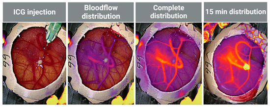 The following supporting information can be downloaded at www.mdpi.com/xxx/, Supplementary Video S1: Fused overlay video of the injection of ICG into a CAM vessel. Supplementary Video S2: IR video of the injection of ICG into a CAM vessel. Supplementary Video S3: Fused overlay video of the CAM 15 min after the injection. Supplementary Video S4: IR video of the CAM 15 min after the injection. Supplementary Figure S1: Near-infrared measurements after intravenous injection of ICG. Tumor derived from three different patients, N = 3. (a–c) Photo of ICG signal intensity of the accumulated ICG in the tumor. IR video and fused overlay video of the removed tumor with the surrounding CAM of representative tumors of patients X (a), Y (b), and Z (c), respectively, with reference points (created with BioRender.com).