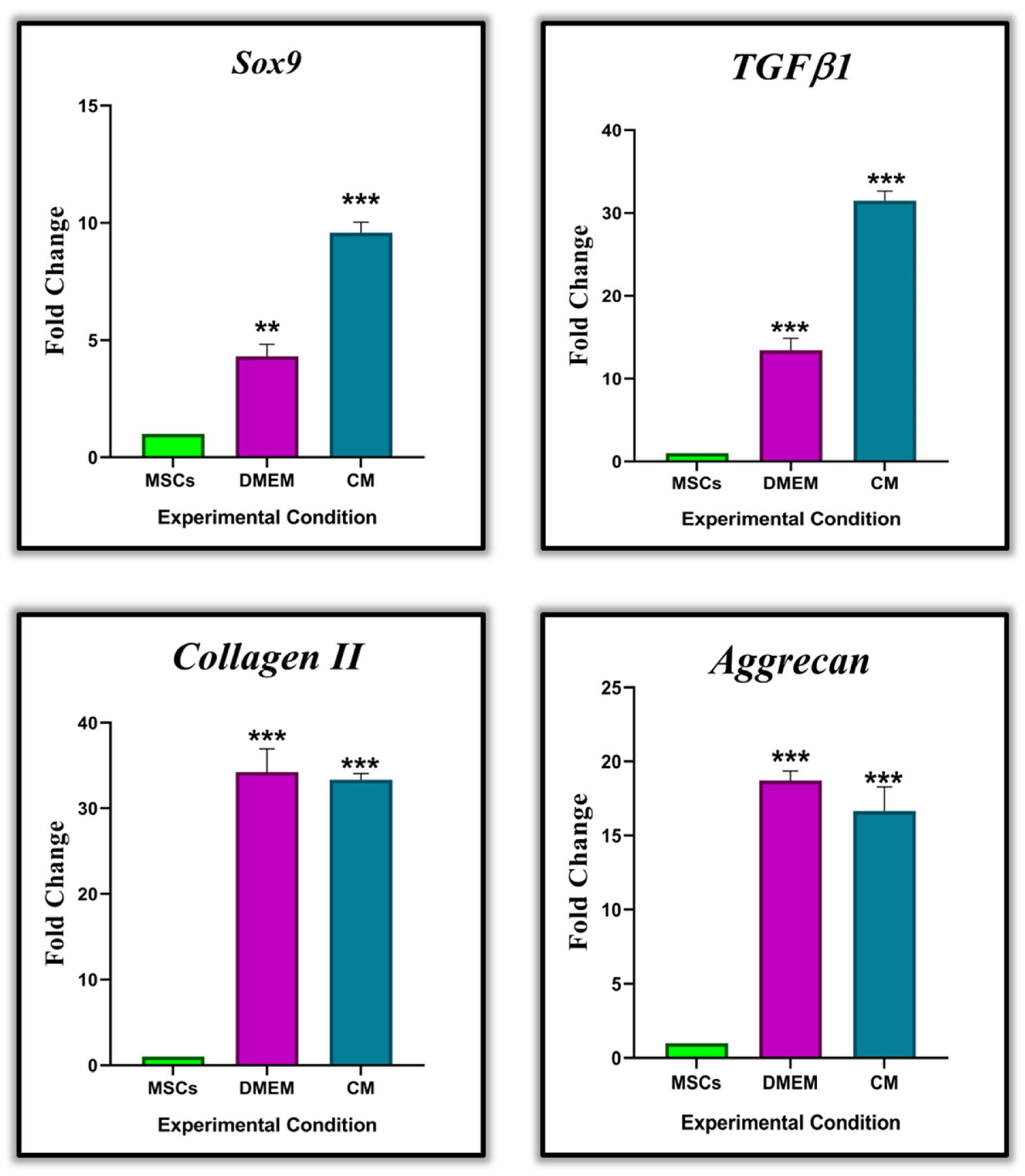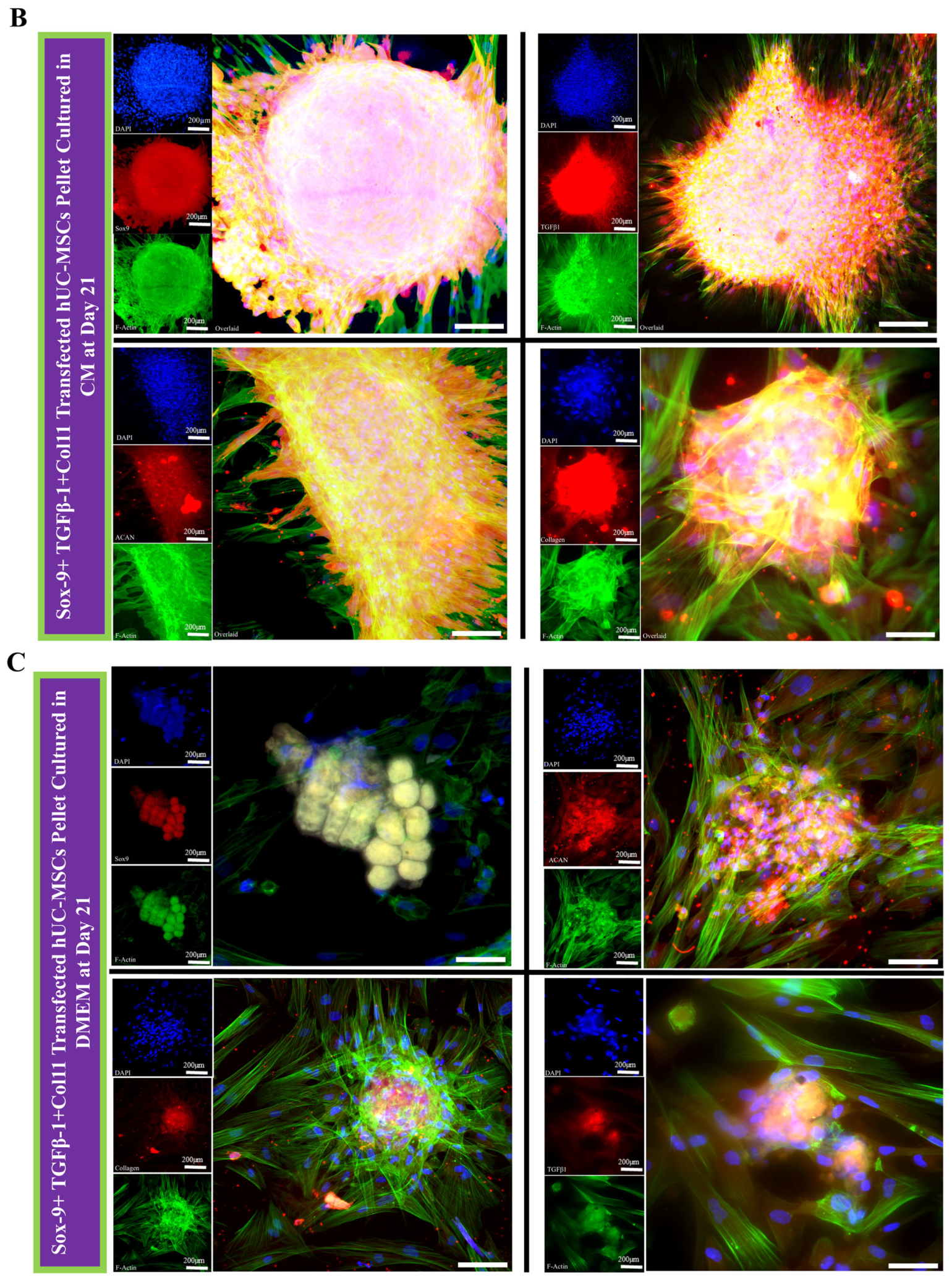 2.4.3. Transfected Human Umbilical Cord-Derived MSCs in Pellet Formation
