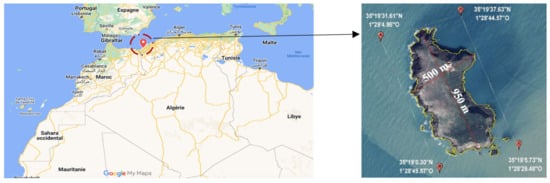 Localization and geographic coordinates of Rachgoun Island (Google Maps) [29].