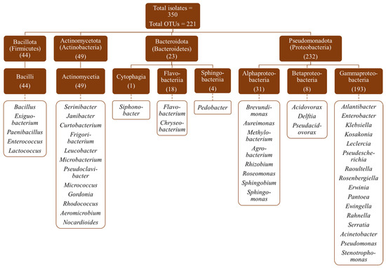 The Minnesota 13 genotypes produced relatively low diversity at higher taxonomic levels (genera to phyla) compared to other heterotic groups, with most isolates belonging to the phylum Pseudomonadota (Proteobacteria) and the class Gammaproteobacteria (Tables S2–S6). The individual maize genotypes of the European Flint and Lancaster heterotic groups hosted relatively high diversity.