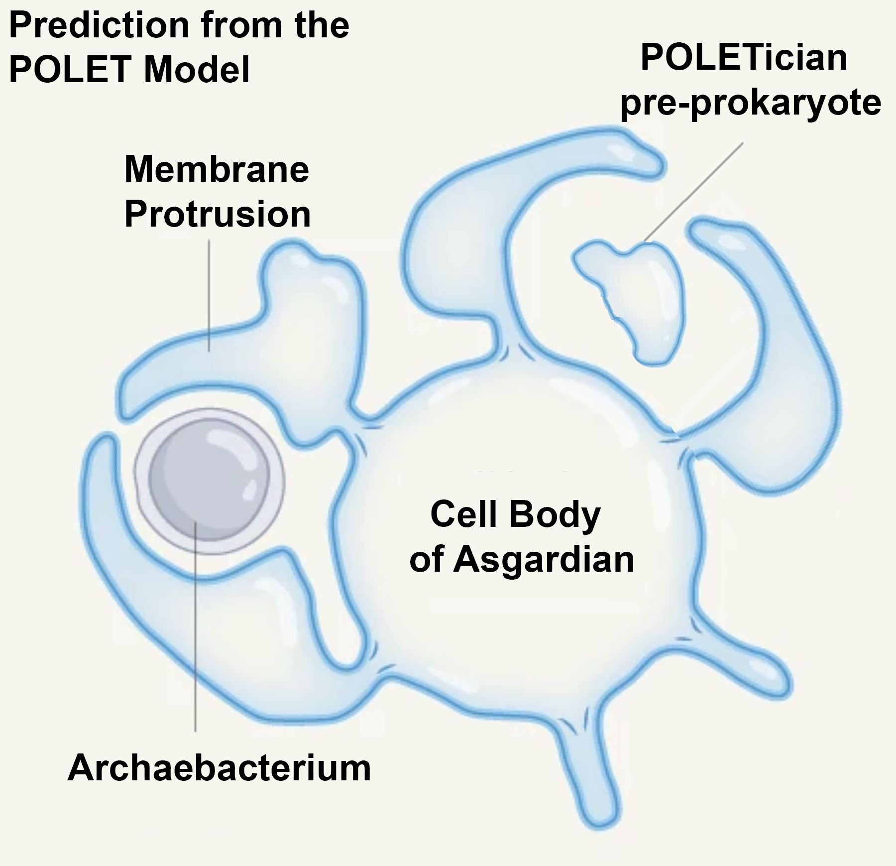 Moreover, POLETicians may engage in syntrophic relationships with Asgard archaea or other extremophiles, possibly providing reduced carbon compounds, cofactors, or redox buffering in exchange for structural protection or additional resources. We do not propose that POLETicians will have all the aspects that we describe in this paper; rather, we present possibilities based on established Origin of Life (OOL) hypotheses.