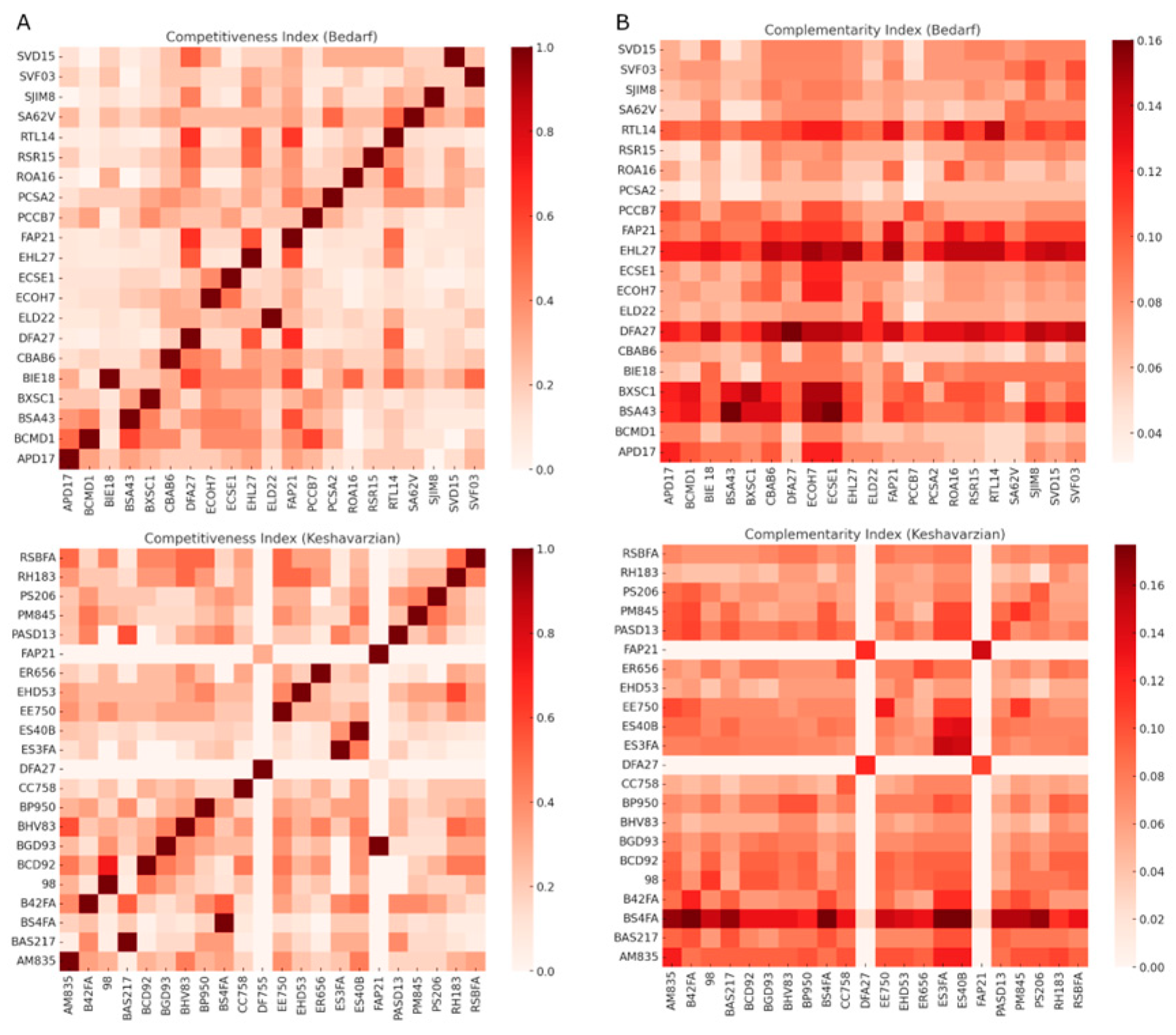 3.1. Competition Indices Outweighed Complementarity in Bacterial Communities