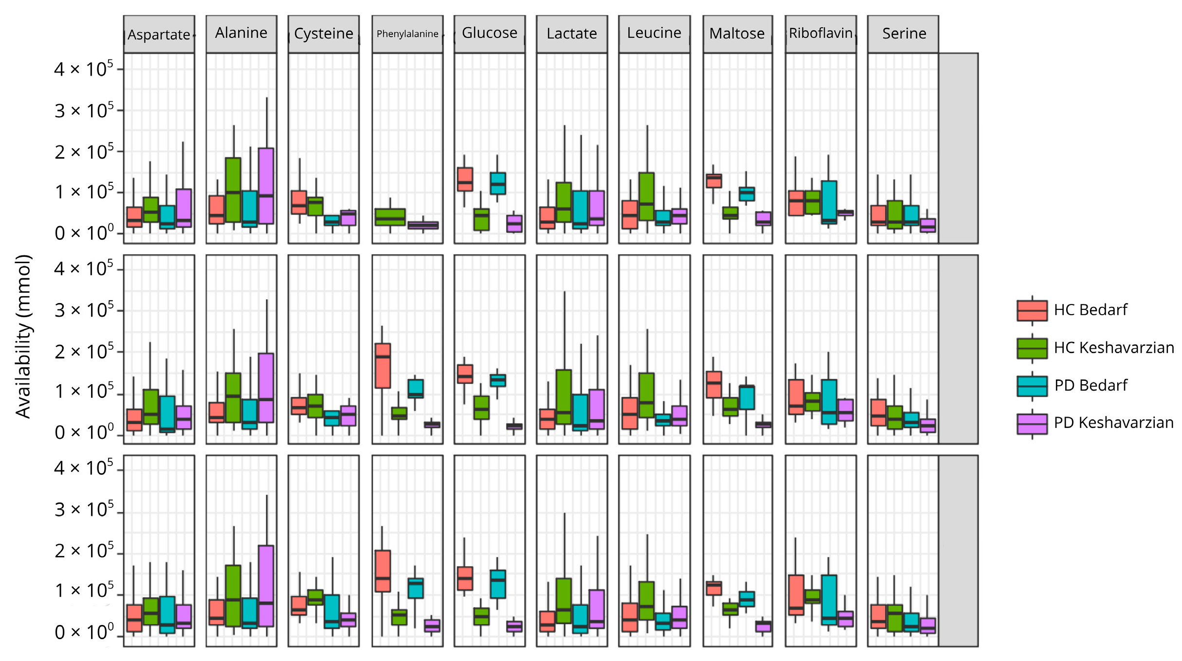 3.3. Metabolic Exchange Networks Leave Certain Metabolites Less Available in PD