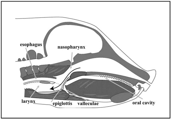 - Larson, J. E., and S. W. Herring. 1996. Movement of the epiglottis in mammals. American Journal of Physical Anthropology 100: 71–82. [Google Scholar] [CrossRef]
