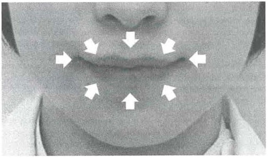 - Ooishi, M., T. Adachi, K. Yasutomi, K. Nakatsuka, K. Yamada, and Y. Masuda. 2011. Multidirectional lip-closing force in the early stage of permanent anterior teeth occlusion (II)—Relationship between lip-closing force and lip morphology or anterior teeth occlusion. The Journal of Japanese Society of Stomatognathic Function 17: 104–112. [Google Scholar] [CrossRef][Green Version]