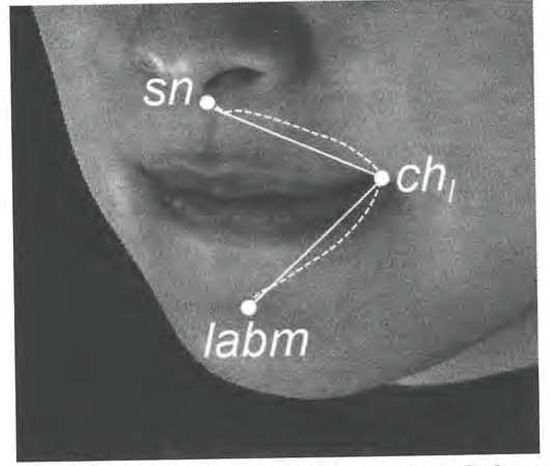 Linear variables for perioral soft tissue (sn: Subnasale; ch1: Cheilion left; lamb: Labiodental).