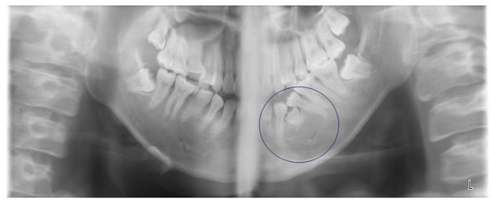 - Naitoh, M.; Ushida, M.; Yoshida, K.; Gotoh, M.; Ariji, Y.; Izumi, M.; Arihi, E. Radiographical observation of impacted deciduous teeth. Aichi-Gakuin Dental Science 2003, 16, 5–10, [In Japanese]. [Google Scholar]