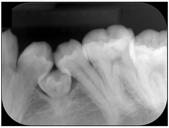 - Yawaka, Y.; Kaga, M.; Osanai, M.; Fukui, A.; Oguchi, H. Delayed eruption of premolars with periodontitis of primary predecessors and a cystic lesion: A case report. International Journal of Paediatric Dentistry 2002, 12, 53–60. [Google Scholar] [PubMed]