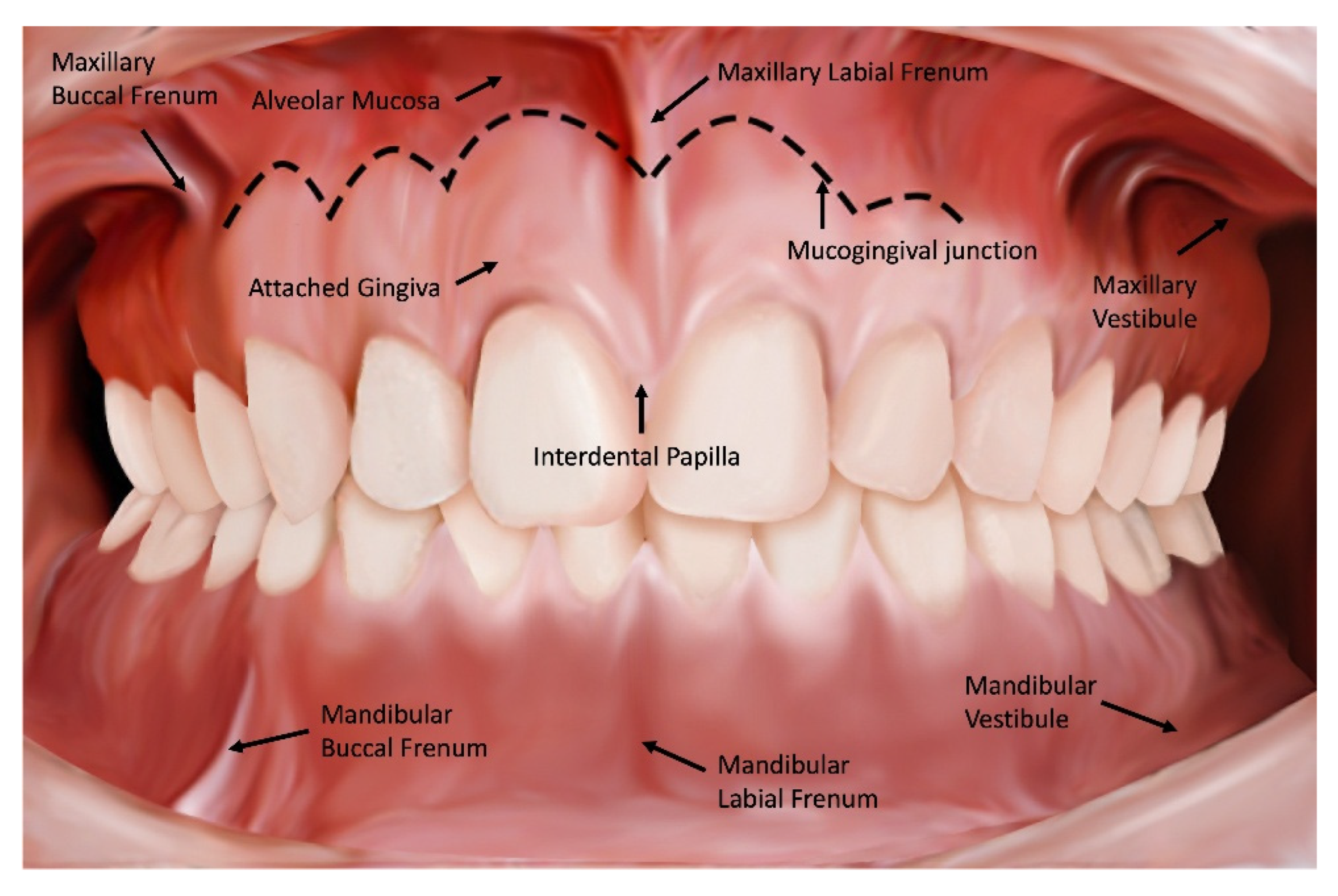 - Priyanka, M.; Sruthi, R.; Ramakrishnan, T.; Emmadi, P.; Ambalavanan, N. An overview of frenal attachments. J. Indian Soc. Periodontol. 2013, 17, 12–15. [Google Scholar] [CrossRef]