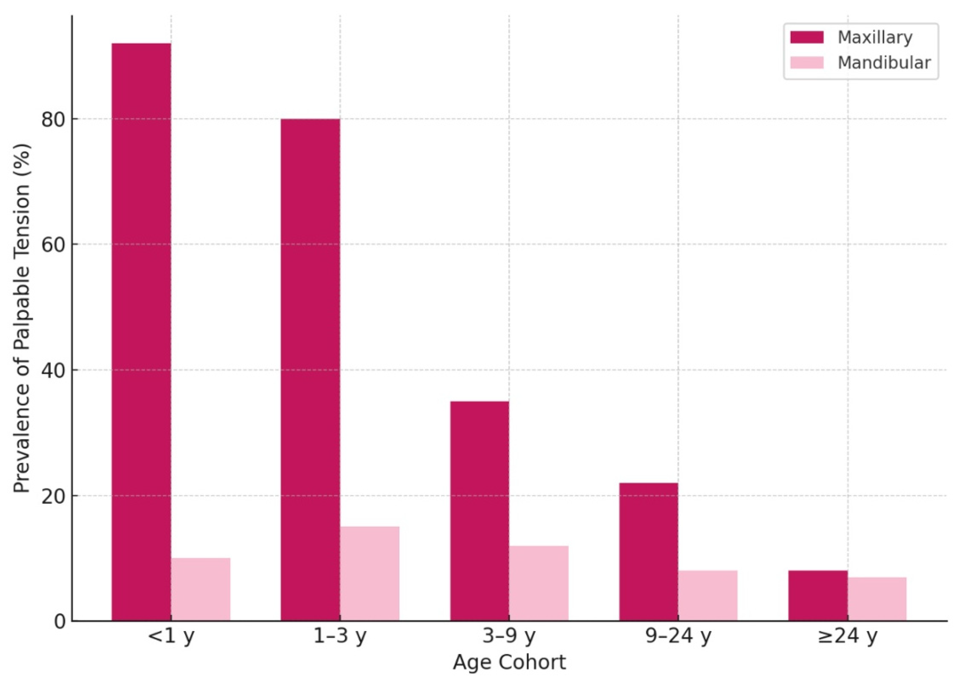 3.3. Maxillary Labial Frenum: Incidence of Palpable Tension by Age Cohort
