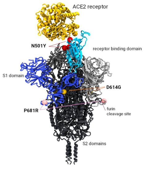 - Korber, B.; Fischer, W.M.; Gnanakaran, S.; Yoon, H.; Theiler, J.; Abfalterer, W.; Hengartner, N.; Giorgi, E.E.; Bhattacharya, T.; Foley, B.; et al. Tracking Changes in SARS-CoV-2 Spike: Evidence That D614G Increases Infectivity of the COVID-19 Virus. Cell 2020, 182, 812–827.e19. [Google Scholar] [CrossRef]