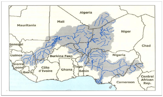 Schistosomiasis transmission remains unabated in some endemic foci in Nigeria despite ongoing preventive chemotherapy programmes [39,56,64]. The Niger River, which is the longest river in West Africa, extends over 4200 km and transverses nine countries (Benin, Burkina Faso, Cameroon, Chad, Côte d’Ivoire, Guinea, Mali, Niger, and Nigeria) (Figure 3). The river basin discharges into the Gulf of Guinea through a massive delta, where 80% of the country’s population lives. Hybridization of S. haematobium and S. bovis species has been reported in Niger [12], Senegal [13], Mali [14], Benin [15,16], and Cameroon [17,18]. These countries share the Niger River and/or its tributaries with Nigeria, so increasing the likelihood of snails infected with hybrid schistosomes being swept downstream during flooding to become established in the Nigerian river system. This is corroborated by a recent molecular analysis of Bulinus snails collected from Nigeria showing shared phylogeny with those from Senegal, Burkina Faso, and Niger [65]. Closer surveillance will augment monitoring for the possible emergence of schistosome hybrid species or zoonotic infections in endemic areas affected by flooding in the country.