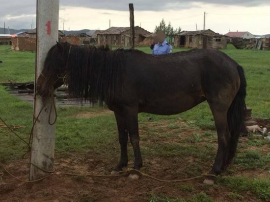 Rabies is a highly fatal zoonotic disease characterized by acute encephalomyelitis and caused by the neurotropic rabies lyssavirus [1,2]. An estimated 60,000 human deaths occur each year due to rabies, many of which occur in Africa and Asia where it is likely underreported [2]. Transmission occurs primarily through bites by infected animals, with dogs representing the most common vector of rabies within Africa, Asia, and South America [3,4,5]. The uncontrolled transmission of zoonotic diseases with high case fatality rates represents a major public health threat in countries such as Mongolia, where livestock production is a major employment sector for the general population and around 26% of the population maintains a pastoralist lifestyle characterized by increased interactions with livestock [6,7]. Within Mongolia, over 70% of human rabies cases reported between 1970–2005 were attributed to dogs, wolves, or foxes [6]. These animals, in addition to the corsac fox, are considered the primary mammals responsible for maintaining rabies within Mongolia [6]. Both equine rabies and equine-sourced human rabies cases are uncommon, with only two reports of equine-sourced human rabies cases found in the literature [5,8]. Within Mongolia, over 600 cases of equine rabies were reported between 1970–2005, while 61 cases were reported between 2012–2018, averaging 10–20 cases per year [6,9]. Here, we report an unusual case study of a Mongolian child bitten by a horse that was later determined to be positive for rabies. This report highlights the need for healthcare providers to indiscriminately suspect rabies exposure in animal bite patients, even in instances in which the offending animal is not a typical rabies source for humans, in order to ensure the timely initiation of effective PEP.