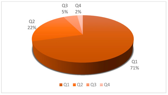 Regarding the quality of the journals, most of the articles selected in this research come from journals with a significant impact factor, generally divided into categories Q1 and Q2. As shown in Figure 3, 67 articles come from journals classified as Q1 and 21 articles from Q2 journals. This distribution testifies to the determination to base this research on high-quality academic work, endowed with a more significant scientific rigor. The small percentage of articles from journals ranked Q3 and Q4 confirms the importance given to the most significant and outstanding articles in this sector. This selection contributes to ensuring a thorough and precise analysis of the methods for detecting aggression and crime events in smart cities.