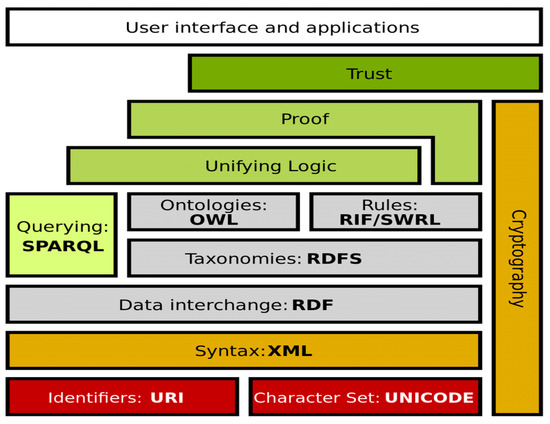 - Berners-Lee, T.; Hendler, J.; Lassila, O. The Semantic Web: A New Form of Web Content that is Meaningful to Computers will Unleash a Revolution of New Possibilities. In Linking the World’s Information; Seneviratne, O., Hendler, J., Eds.; ACM: New York, NY, USA, 2023; pp. 91–103. ISBN 979-8-4007-0794-0. [Google Scholar]