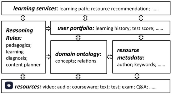 - Wu, L.; Liu, Q.; Zhou, W.; Mao, G.; Huang, J.; Huang, H. A Semantic Web-Based Recommendation Framework of Educational Resources in E-Learning. Technol. Knowl. Learn. 2018, 25, 811–833. [Google Scholar] [CrossRef]