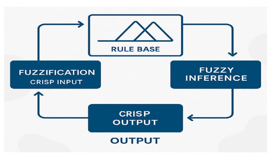 Fuzzy logic has been widely adopted in photovoltaic (PV) system monitoring due to its ability to handle uncertainty and mimic human decision-making in complex, nonlinear environments. Various studies have implemented fuzzy logic controllers (FLCs) to improve fault detection accuracy and system adaptability. The FLC typically consists of three main stages: fuzzification, inference, and defuzzification (Figure 6). During fuzzification, input parameters—such as irradiance, temperature, voltage, or current—are translated into fuzzy linguistic variables using membership functions (e.g., low, medium, high). The fuzzy inference engine then applies a predefined rule base composed of IFTHEN statements to determine the system’s response to abnormal conditions [13].