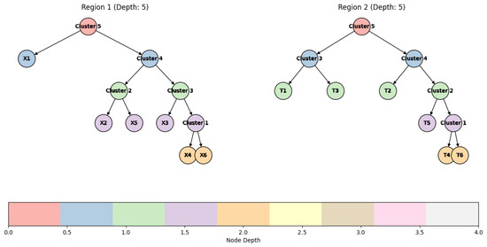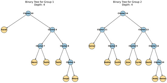 Binary tree visualizations provide a structured representation of hierarchical clustering results, improving interpretability and outlier detection. This is shown in Figure 10. The corresponding values of depth and compactness are presented in Table 4.