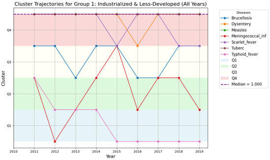 - Group 2: More stable disease patterns, although Measles showed significant fluctuations between 2012 and 2016, suggesting periodic outbreaks that may require vaccination-focused policies.