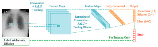 - Rajpurkar, P.; Irvin, J.; Zhu, K.; Yang, B.; Mehta, H.; Duan, T.; Ding, D.; Bagul, A.; Ball, R.L.; Langlotz, C.; et al. CheXNet: Radiologist-Level Pneumonia Detection on Chest X-Rays with Deep Learning. arXiv 2017, arXiv:1711.05225v3. [Google Scholar]