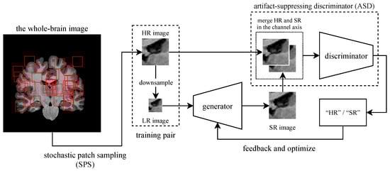 In regular GAN training, a generator and a discriminator are trained adversarially. The discriminator indirectly lets the generator learn to make more natural images by trying to identify whether the input is “real” or “fake” (i.e., HR or SR). On the other hand, the proposed ASD takes a two-channeled input, which always contains a HR image in one of the channels. Therefore, in addition to the usual effect, the discriminator itself learns the SR image closer to the HR by implicitly giving the information of the relative location of a patch in a whole-brain image. In this regard, an overfitting effect could be expected because of more information given to the networks during training. Nevertheless, from our experiment with different patients, no adverse effect was confirmed.