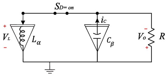 Meanwhile, when the and , the fractional-order Buck-Boost converter is in State 2, as Figure 3 depicts.