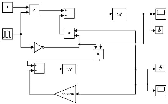 The mathematical model of the fractional-order Buck-Boost converter driven by CCM is implemented in the Matlab/Simulink environment through the FOMCON toolbox [16]. According to the state–space model given by (11), we construct the block diagram of the system, as shown in Figure 5. It is noteworthy that is the fractional integral unit.